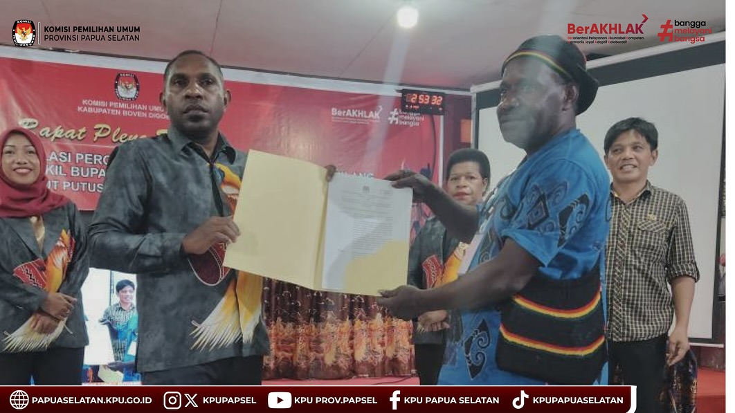 #TemanPemilih, KPU Provinsi Papua Selatan menghadiri Rapat Pleno Terbuka Penetapan Hasil Rekapitulasi Perolehan Suara Pemungutan Suara Ulang (PSU) Pemilihan Bupati dan Wakil Bupati Kabupaten Boven Digoel Tahun 2024, sebagai tindak lanjut atas Putusan Mahkamah Konstitusi Republik Indonesia.
