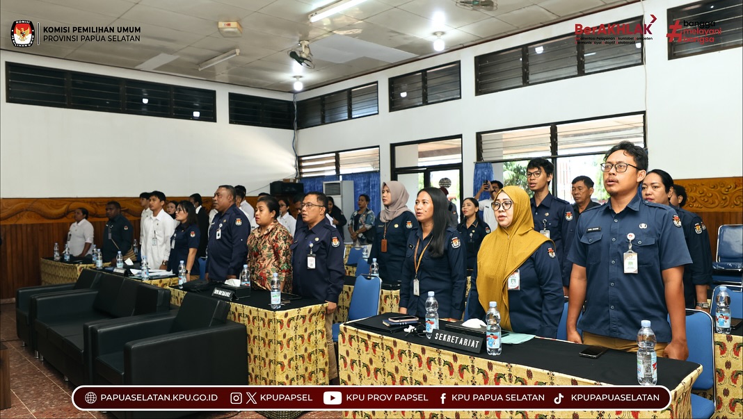 #TemanPemilih, KPU Provinsi Papua Selatan menggelar Rapat Koordinasi Tindak Lanjut Penyelesaian Temuan Pemeriksaan BPK, BPKP, dan APIP pada KPU Provinsi Papua Selatan dan KPU Kabupaten se-Provinsi Papua Selatan. Kegiatan ini dilaksanakan secara luring dan daring dari Kantor KPU Provinsi Papua Selatan, Selasa (4/11/2025).
