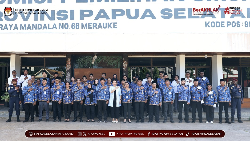 #TemanPemilih, KPU Provinsi Papua Selatan melaksanakan Upacara Peringatan Hari Pahlawan Tahun 2025 yang berlangsung di halaman Kantor KPU Provinsi Papua Selatan, Senin (10/11/2025).