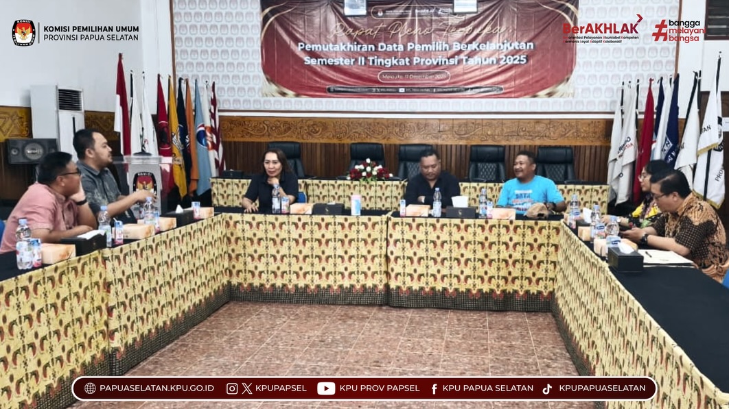 #TemanPemilih, KPU Provinsi Papua Selatan menerima kunjungan Pejabat Dewan Kehormatan Penyelenggara Pemilu (DKPP) dalam rangka pelaksanaan Survei Indeks Kepatuhan Etik Penyelenggara Pemilu, Jumat (12/12/2025).