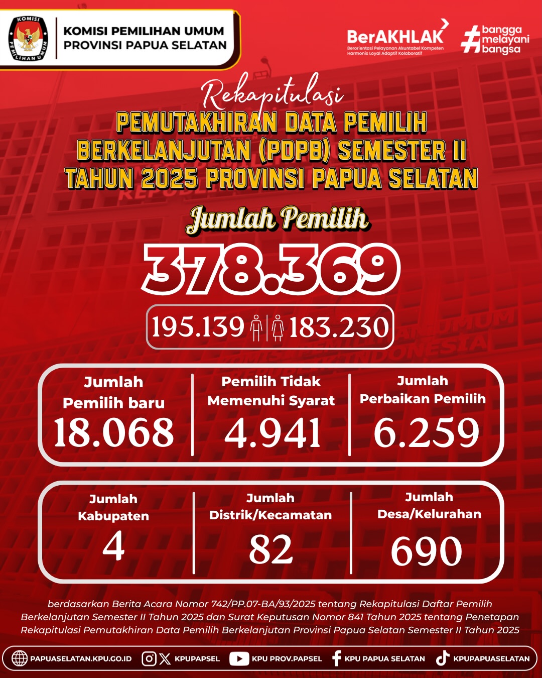 REKAPITULASI PEMUTAKHIRAN DATA PEMILIH BERKELANJUTAN SEMESTER II TAHUN 2025 PROVINSI PAPUA SELATAN
