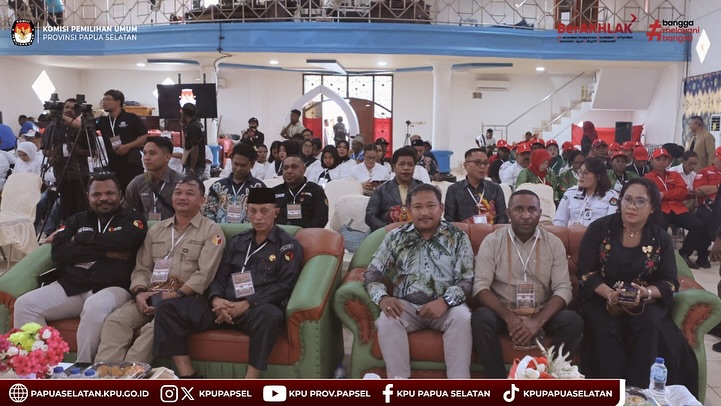 #TemanPemilih, Anggota KPU Provinsi Papua Selatan, Alson Markus Kambu dan Daniel Ndiwaen, menghadiri kegiatan Debat Publik Pemungutan Suara Ulang (PSU) Pemilihan Bupati dan Wakil Bupati Kabupaten Boven Digoel Tahun 2024, sebagai tindak lanjut atas Putusan Mahkamah Konstitusi Republik Indonesia. Kegiatan ini berlangsung di Aula Kantor Bupati Boven Digoel, Senin (28/07/2025).