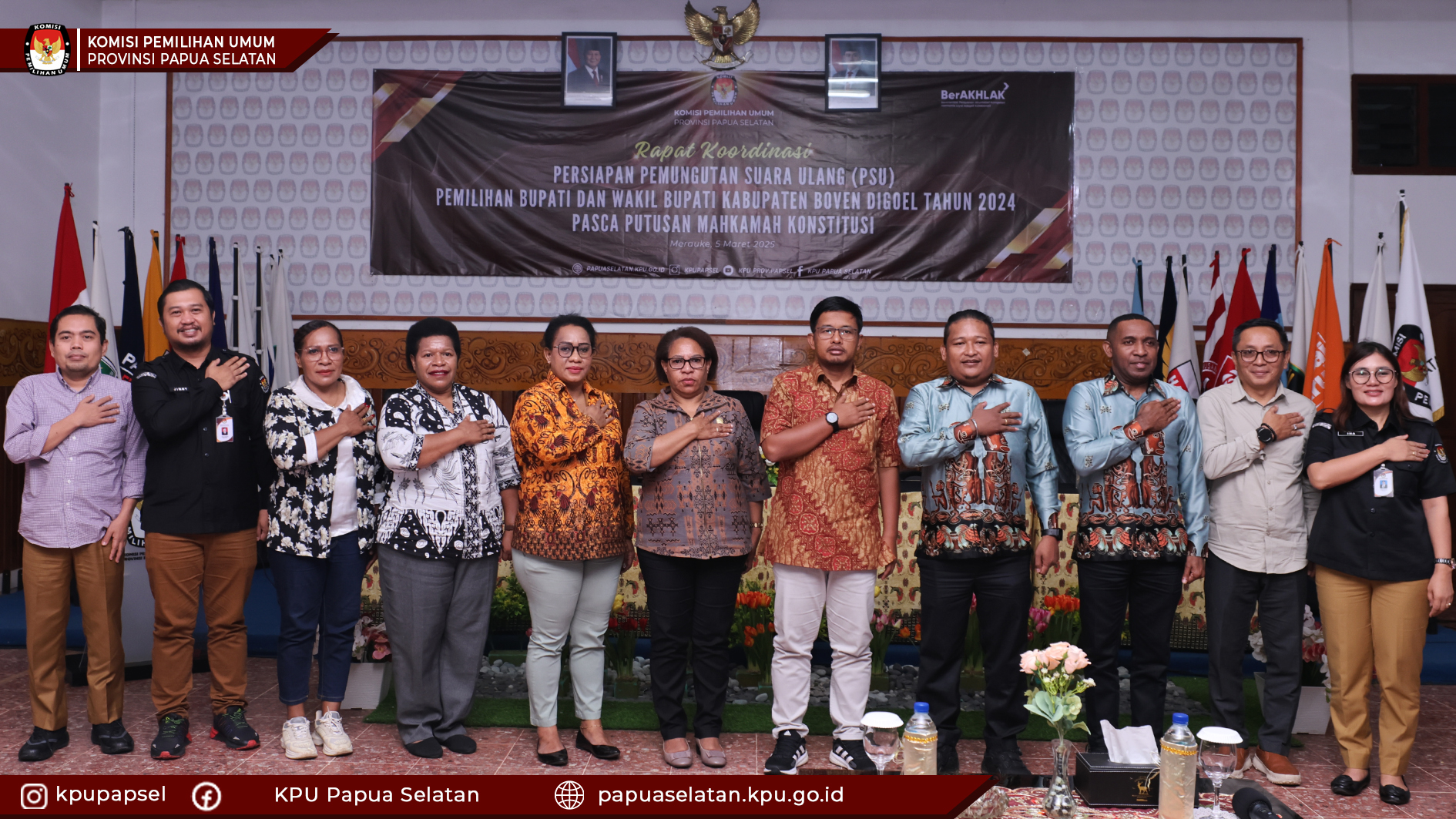 #Temanpemilih, Anggota KPU RI Divisi Teknis Penyelenggaraan, Idham Holik, melakukan kunjungan kerja ke KPU Provinsi Papua Selatan dalam rangka mengikuti Rapat Koordinasi Pemungutan Suara Ulang (PSU) Pemilihan Bupati dan Wakil Bupati Kabupaten Boven Digoel Tahun 2024 pasca putusan Mahkamah Konstitusi. Kegiatan berlangsung di Merauke, Rabu (5/3/2025)