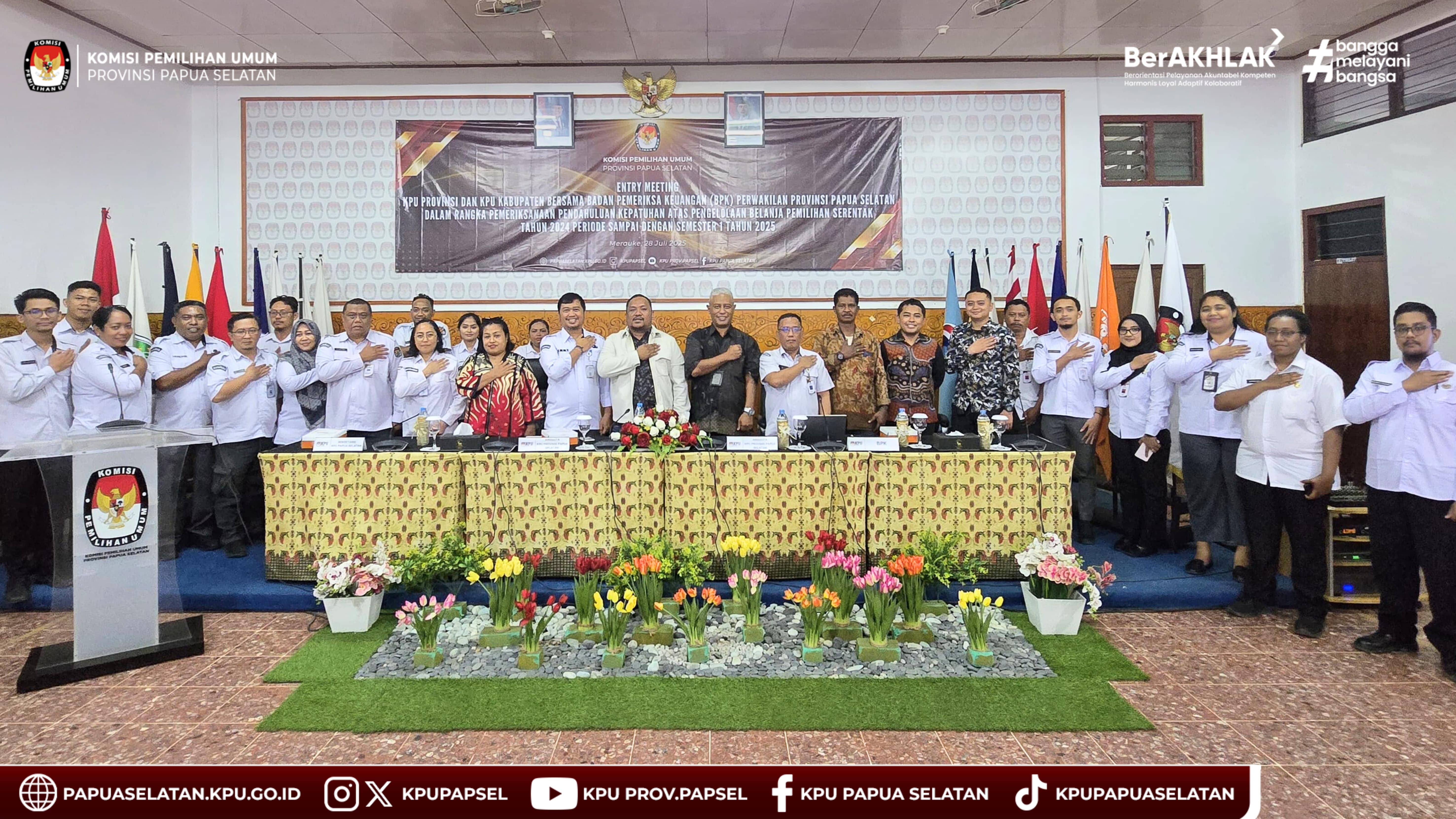 #temanpemilih, KPU Provinsi Papua Selatan melaksanakan Entry Meeting bersama Badan Pemeriksa Keuangan (BPK) Perwakilan Provinsi Papua Selatan dalam rangka Pemeriksaan Pendahuluan Kepatuhan atas Pengelolaan Belanja Pemilihan Kepala Daerah Serentak Tahun 2024 Periode Tahun 2024 s.d. Semester I Tahun 2025 secara Hybrid di Aula Kantor KPU Provinsi Papua Selatan, Senin (28/7/2025)