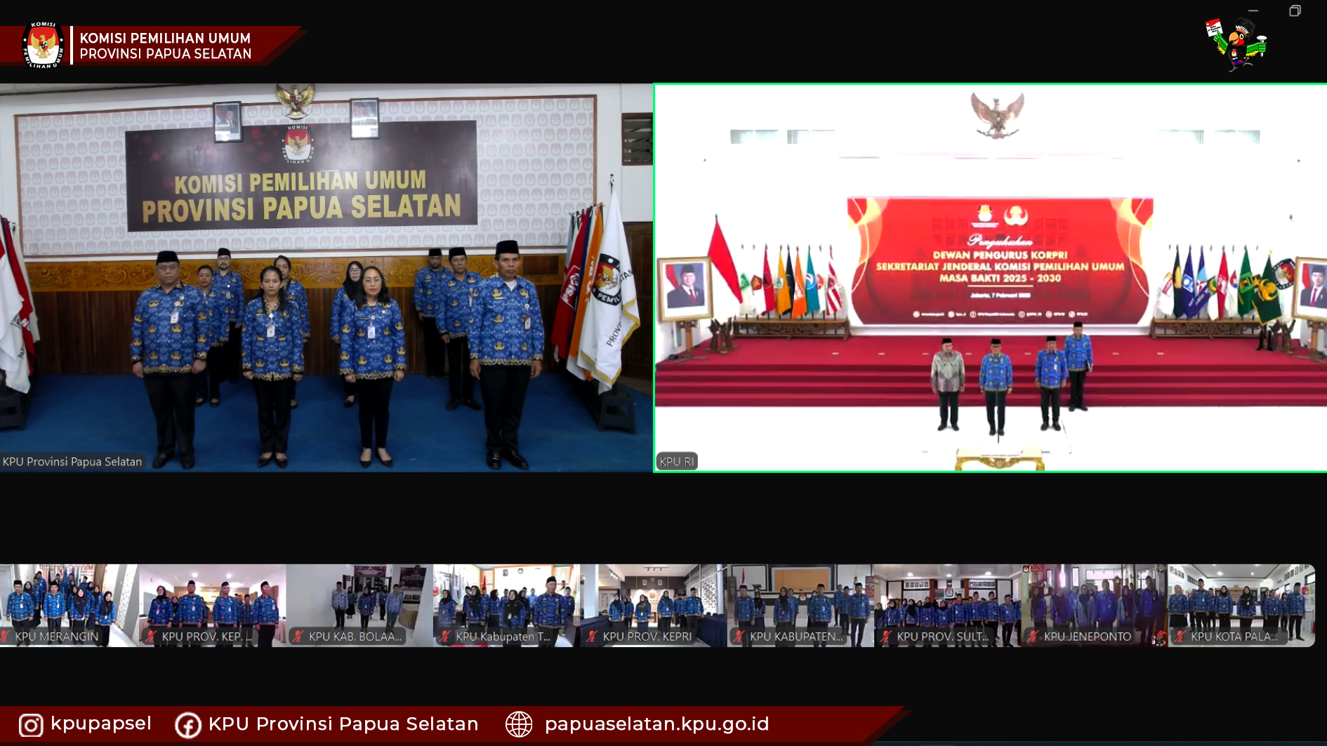 #Temanpemilih, KPU Provinsi Papua Selatan mengikuti kegiatan Pengukuhan Dewan Pengurus KORPRI Sekretariat Jenderal Komisi Pemilihan Umum, Pengukuhan di ikuti secara daring di aula KPU Provinsi Papua Selatan, Jumat (07/02/2025)
