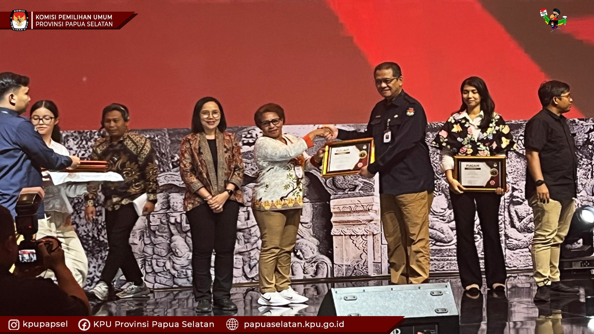 KPU PAPUA SELATAN RAIH PENGHARGAAN DALAM RAKORNAS PERSIAPAN PENETAPAN PASANGAN CALON TERPILIH PILKADA 2024