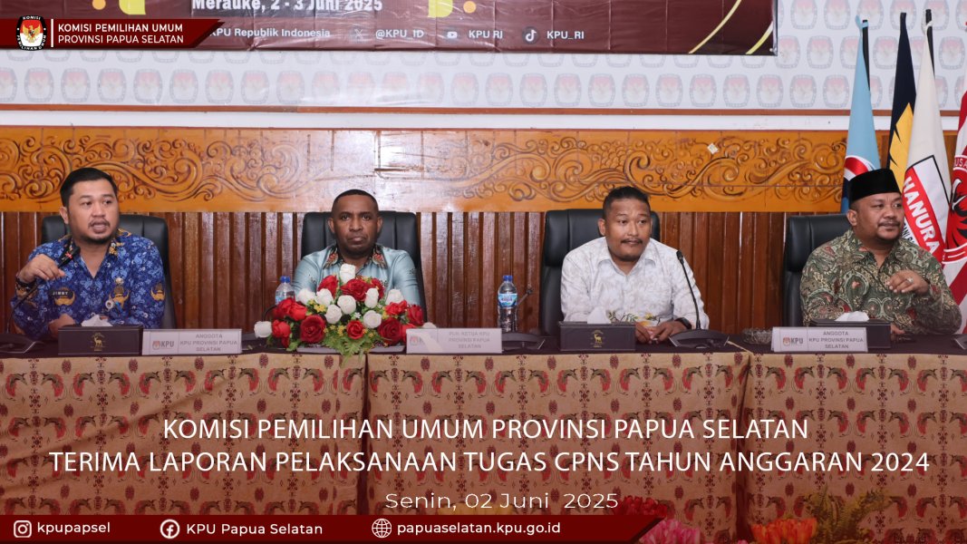 #TemanPemilih, Komisi Pemilihan Umum Provinsi Papua Selatan telah menerima laporan pelaksanaan tugas Calon Pegawai Negeri Sipil (CPNS) Tahun Anggaran 2024 di lingkungan Sekretariat KPU Provinsi dan KPU Kabupaten se-Papua Selatan. bertempat di Kantor KPU Provinsi Papua Selatan, Senin(2/6/2025).