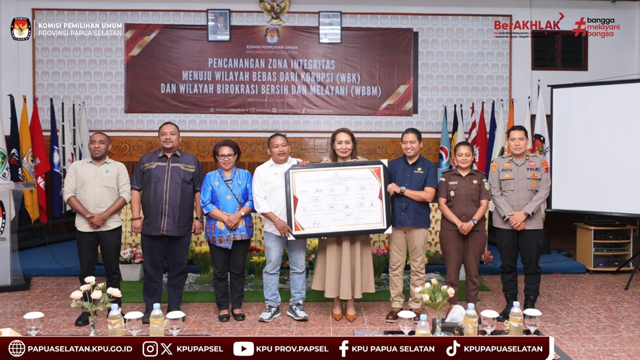 #TemanPemilih, KPU Provinsi Papua Selatan menyelenggarakan kegiatan Pencanangan Zona Integritas Menuju Wilayah Bebas Korupsi (WBK) dan Wilayah Birokrasi Bersih dan Melayani (WBBM), bertempat di Kantor KPU Provinsi Papua Selatan, Rabu (25/6/2025)