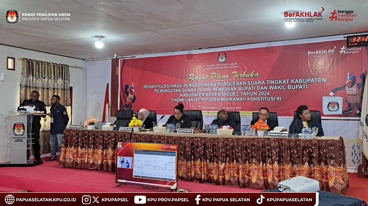 KPU PROVINSI PAPUA SELATAN HADIRI RAPAT PLENO TERBUKA REKAPITULASI HASIL TUNGSURA PSU PEMILIHAN BUPATI DAN WAKIL BUPATI BOVEN DIGOEL TAHUN 2024 TINDAK LANJUT PUTUSAN MK