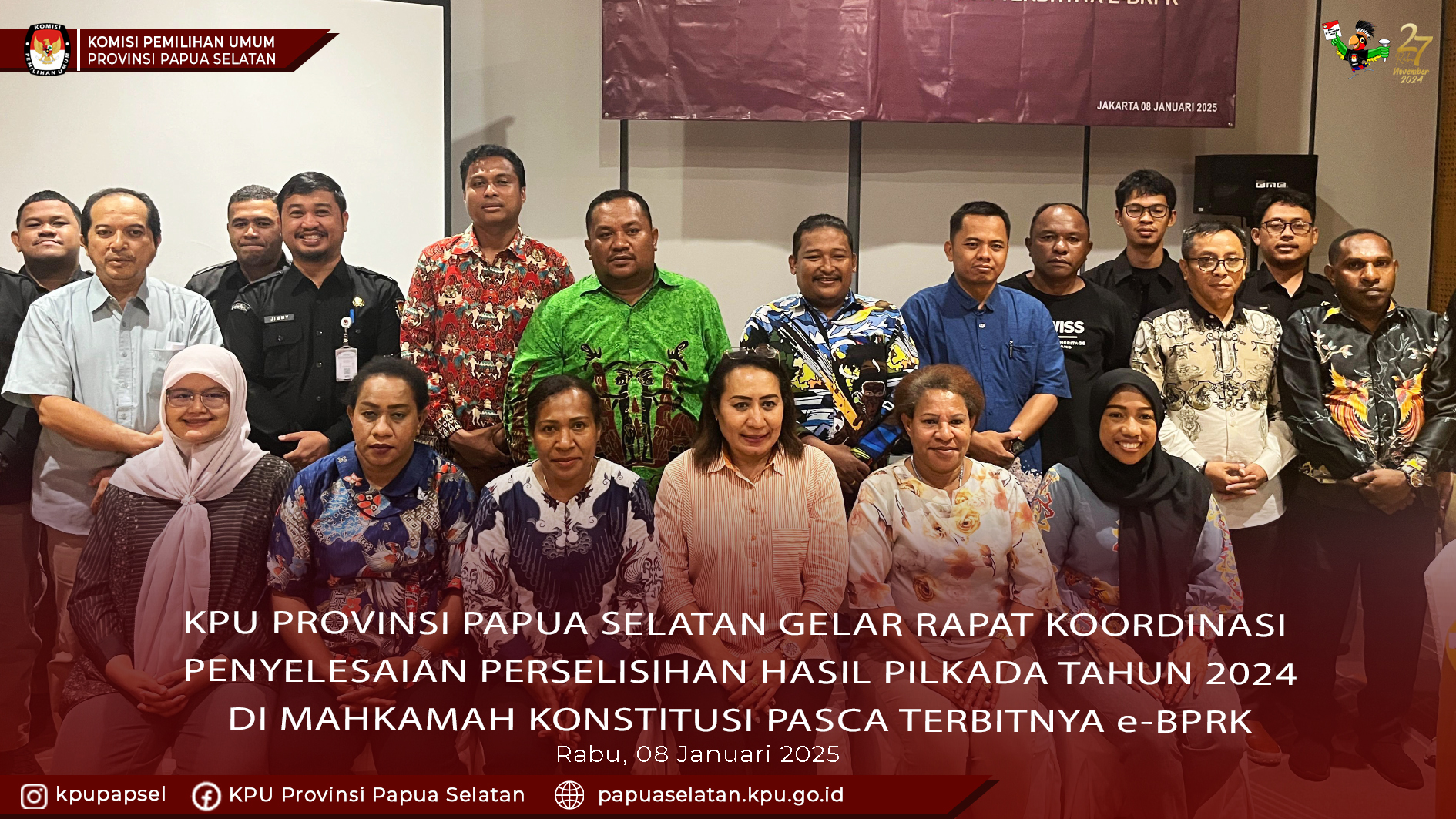 #Temanpemilih, KPU Papua Selatan Gelar Rapat Koordinasi Penyelesaian Perselisihan Hasil Pilkada Tahun 2024 di Mahkamah Konstitusi pasca terbitnya e-BPRK (Elektronik Buku Panduan Resmi Keputusan), bertempat di Hotel Harris Vertu Jakarta, Rabu(08/01/2025)