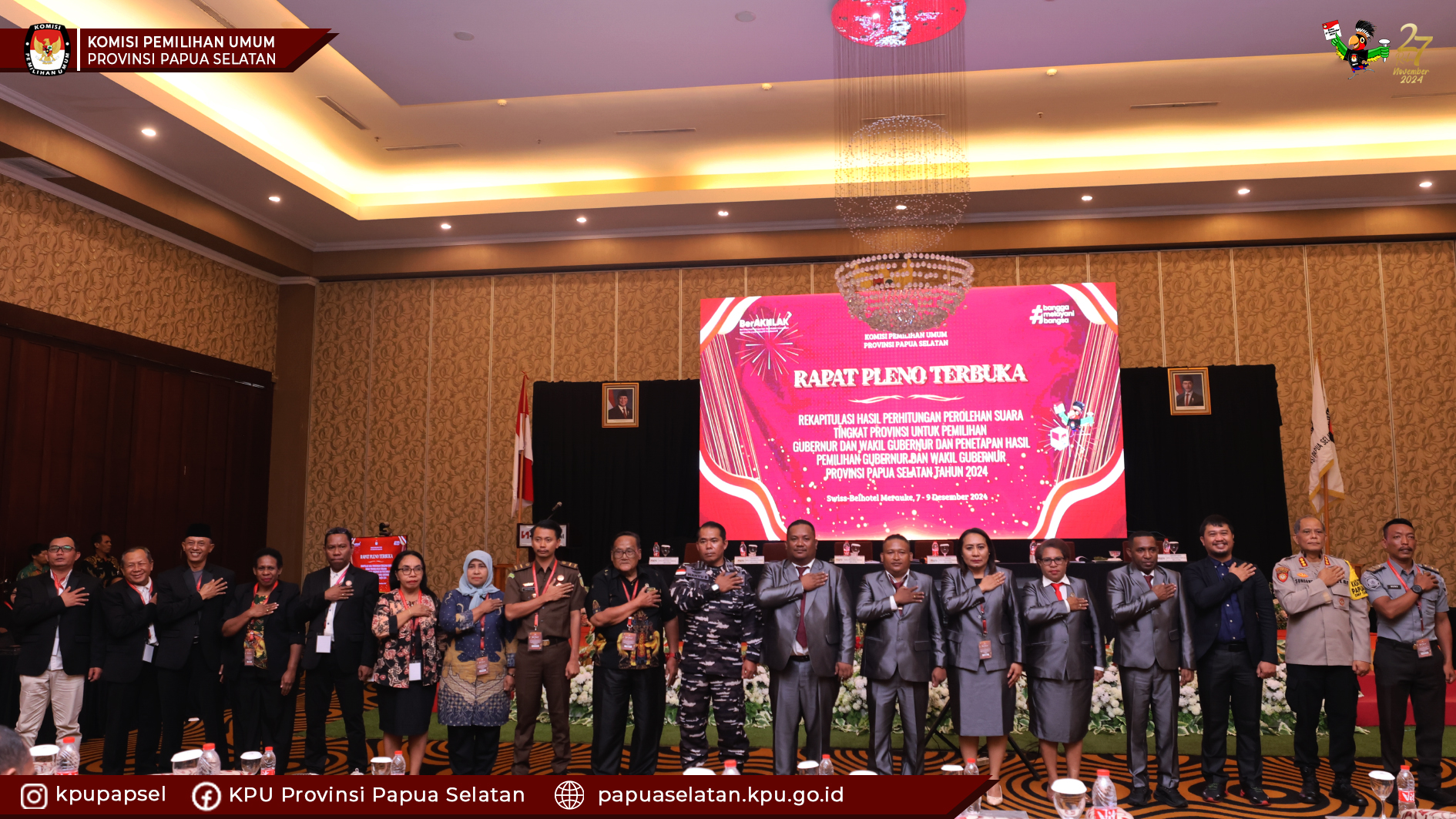 RAPAT PLENO TERBUKA REKAPITULASI HASIL PERHITUNGAN PEROLEHAN SUARA TINGKAT PROVINSI DAN PENETAPAN HASIL PEMILIHAN GUBERNUR DAN WAKIL GUBERNUR PAPUA SELATAN TAHUN 2024