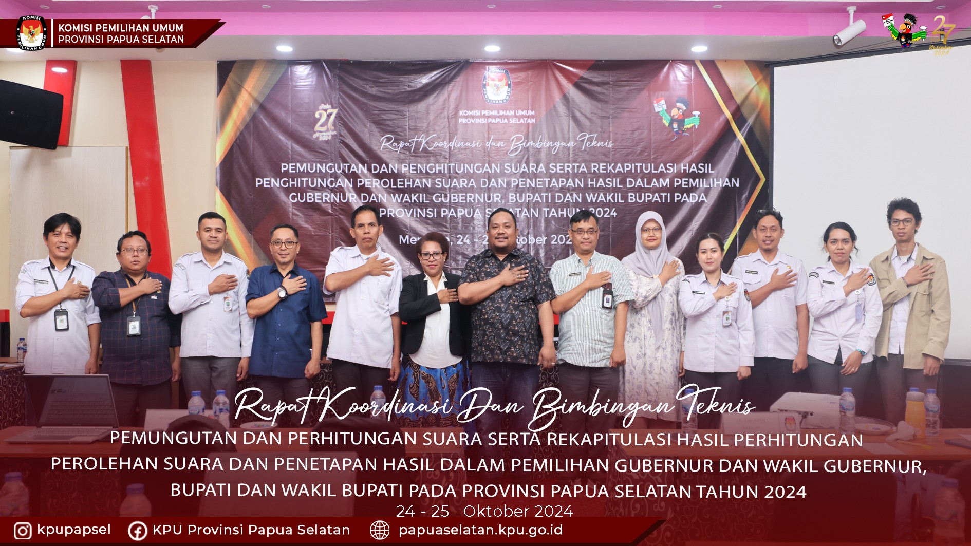 Hadir sebagai Peserta Rapat Koordinasi Danlantamal XI, Danlanud J.A. Dimara, Dandim 1707, Ketua KPU Kabupaten Merauke, Ketua KPU Kabupaten Boven Digoel, Kabbag KUL KPU Provinsi Papua Selatan, Kasubbag KUL Provinsi Papua Selatan serta Sekretariat KPU Provinsi Papua Selatan.