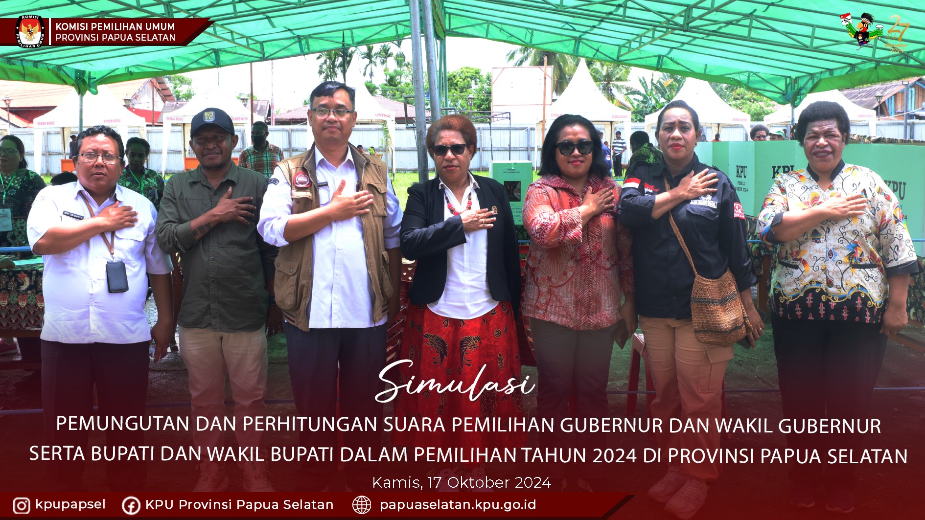 #TemanPemilih, KPU Provinsi Papua Selatan mengadakan Simulasi Pemungutan Dan Perhitungan Suara Pemilihan Gubernur Dan Wakil Gubernur Serta Bupati Dan Wakil Bupati Dalam Pemilihan Tahun 2024 Di Provinsi Papua Selatan bertempat di Lapangan Trikora Kabupaten Boven Digoel. (Kamis,17/10/2024).