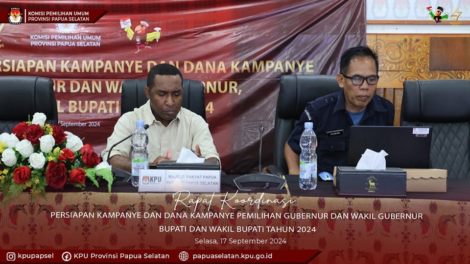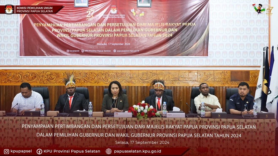 #TemanPemilih, KPU Provinsi Papua Selatan Melaksanakan Pertemuan dengan Majelis Rakyat Papua Selatan terkait Penyampaian Pertimbangan Dan Persetujuan Dari Majelis Rakyat Papua Provinsi Papua Selatan dalam Pemilihan Gubernur Dan Wakil Gubernur Provinsi Papua Selatan Tahun 2024 bertempat di Aula Kantor KPU Provinsi Papua Selatan. (Selasa,17/09/2024).