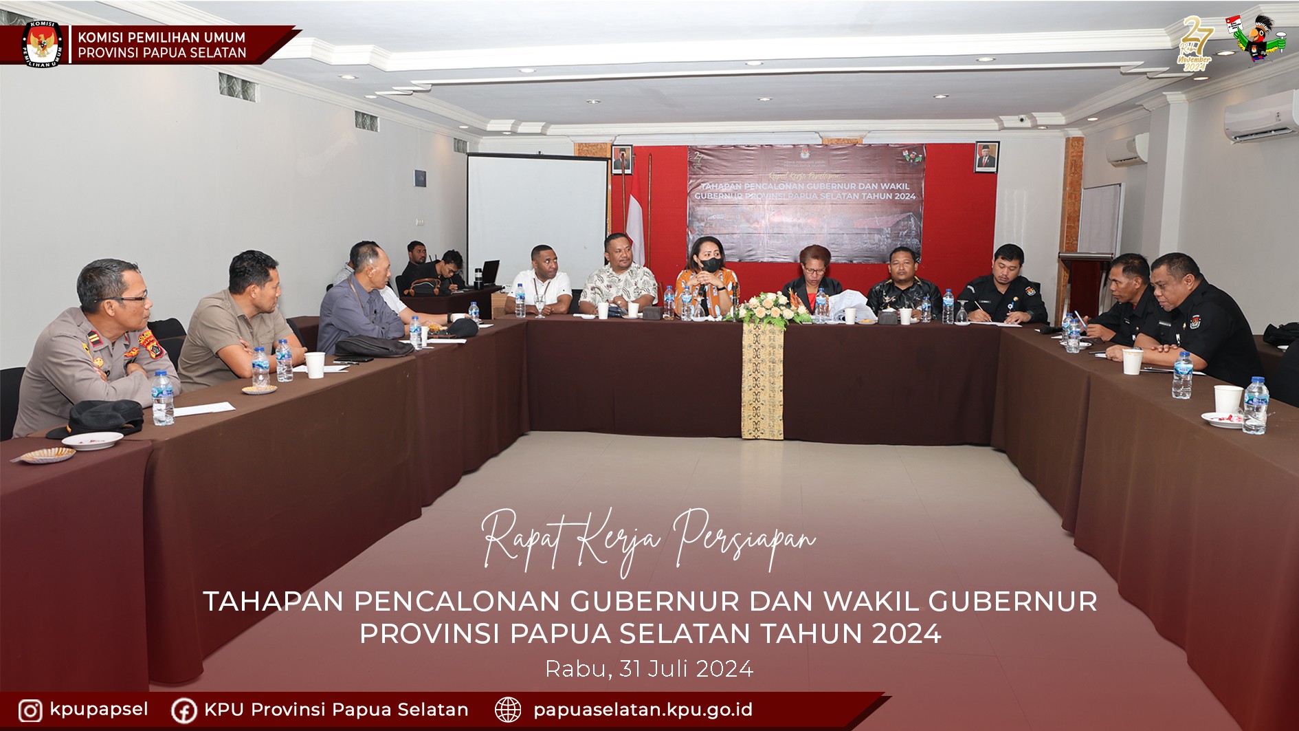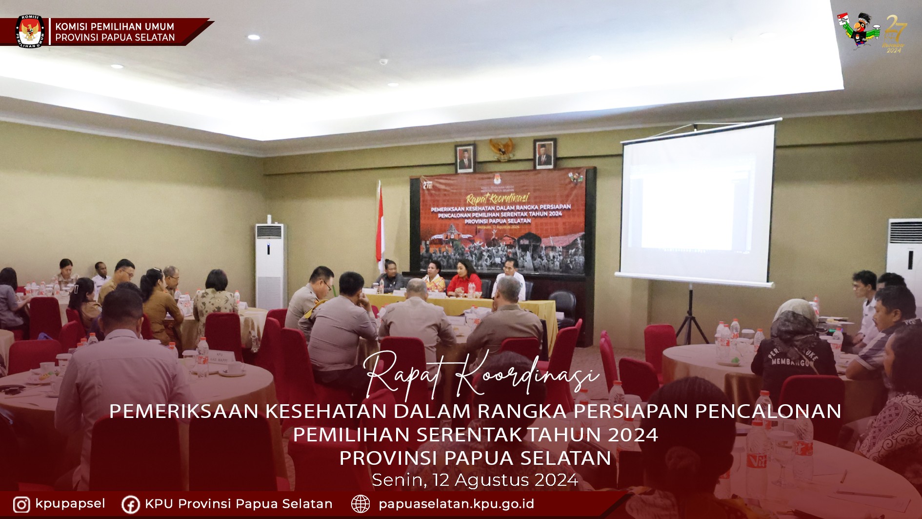 #Temanpemilih Ketua dan Anggota KPU Provinsi Papua Selatan mengisi materi dalam Rapat Koordinasi Pemeriksaan Kesehatan dalam Rangka Persiapan Pencalonan Pemilihan Serentak Tahun 2024 Provinsi Papua Selatan bertempat dihotel Swissbell Merauke, Senin, (12/08/2024). Helda memaparkan mengenai pedoman teknis terkait pemeriksaan kesehatan dalam Pemilihan Gubernur Dan Wakil Gubernur, Bupati Dan Wakil Bupati, Serta Walikota Dan Wakil Walikota Tahun 2024 sesuai dengan Keputusan Komisi Pemilihan Umum Nomor 1090 Tahun 2024. Sedangkan Theresia memaparkan terkait dengan kesiapan kepolisian dalam pengamanan pelaksanaan pemilihan serentak tahun 2024 pada 4 kabupaten pada wilayah Provinsi Papua Selatan. Hadir dalam acara tersebut Kepala Dinas Kesehatan Provinsi dan Kepala Dinas Kesehatan Kabupaten, Direktur RSUD Merauke, Ketua dan anggota KPU Kabupaten, LO Polda Papua Persiapan Papua Selatan, Kapolres 4 Kabupaten serta kasubag/admin/operator KPU Kabupaten. #kpumelayani #pilkadaserentak2024