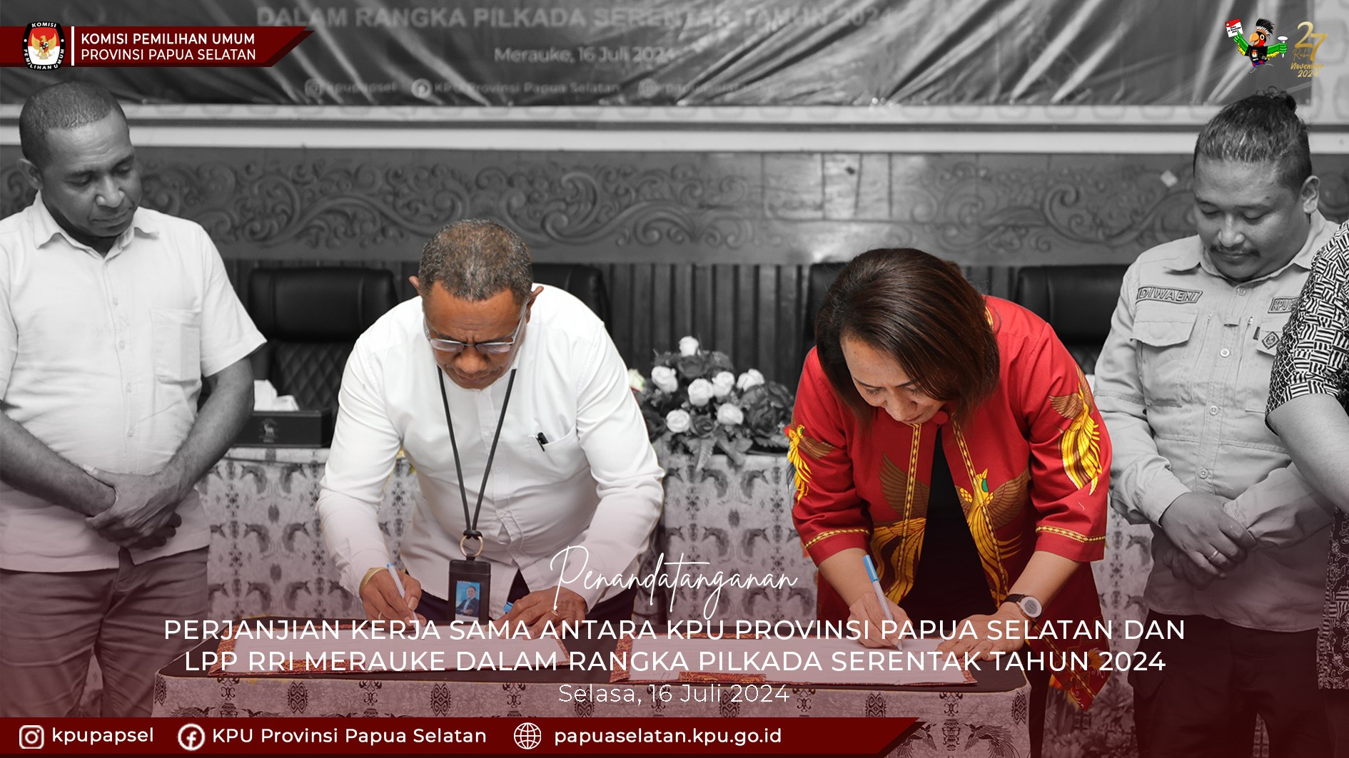 Penandatangan MoU itu berlangsung di Aula kantor KPU Provinsi Papua Selatan yang diikuti Ketua KPU Theresia Mahuse dan 4 komisoner KPU, Sekretaris KPU Jimmy Wiranata, kabag, kasubag, LO Polda Papua dan Sekretariat KPU PPS. Selain itu juga hadir Kepala LPP RRI Merauke Jakobus Resubun bersama jajarannya.