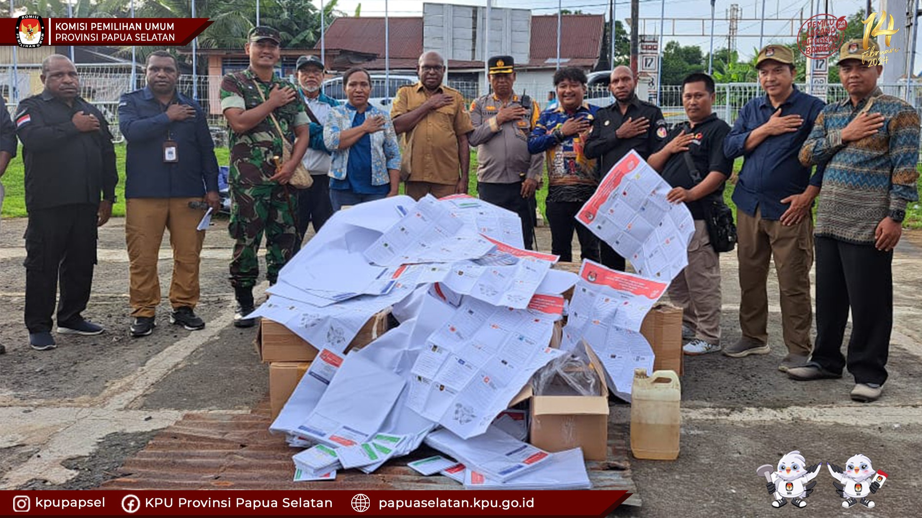 Surat suara yang dimusnahkan merupakan kelebihan dan kerusakan Logistik untuk Kabupaten Mappi. Yaitu Surat Suara Presiden dan Wakil Presiden sebanyak 671 lembar, Surat Suara DPR sebanyak 126 lembar, Surat Suara DPRD Provinsi 4546 lembar, Surat Suara DPRD Kabupaten sebanyak 704 lembar, dan Surat Suara Pemilu Anggota DPD sebanyak 252 lembar. Pemusnahan disaksikan langsung oleh Ketua, Anggota dan Sekretaris KPU Kabupaten Mappi, Bawaslu Kabupaten Mappi, Sekretaris Daerah Kabupaten Mappi Sertas pihak Kopilisian dan TNI Kabupaten Mappi.