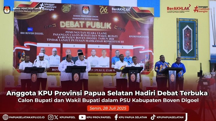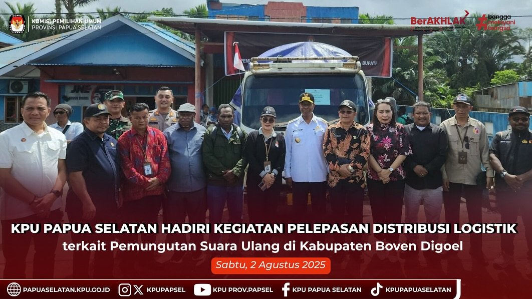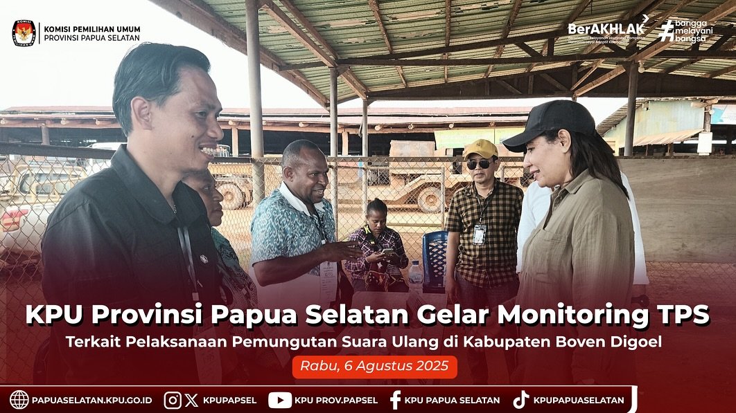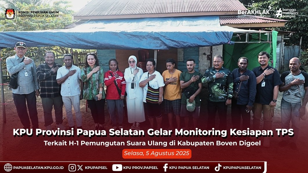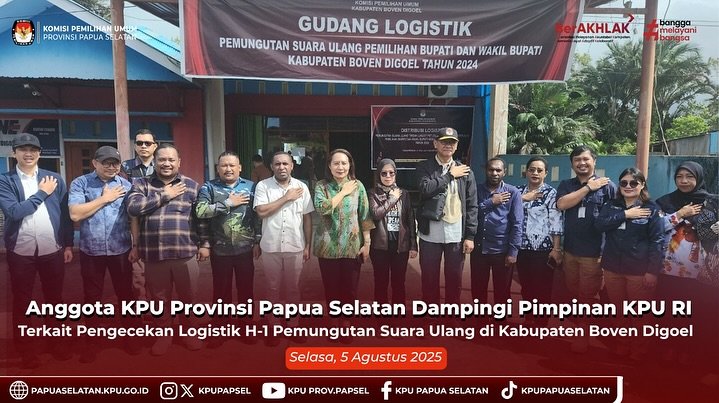#TemanPemilih, KPU Provinsi Papua Selatan turut mendampingi KPU Republik Indonesia dalam kegiatan monitoring pelaksanaan Pemungutan Suara Ulang (PSU) Pemilihan Bupati dan Wakil Bupati Kabupaten Boven Digoel Tahun 2024. Kegiatan monitoring ini dilakukan langsung ke sejumlah Tempat Pemungutan Suara (TPS) di Distrik Mandobo, Kabupaten Boven Digoel, Papua Selatan, Rabu (6/8/2025).