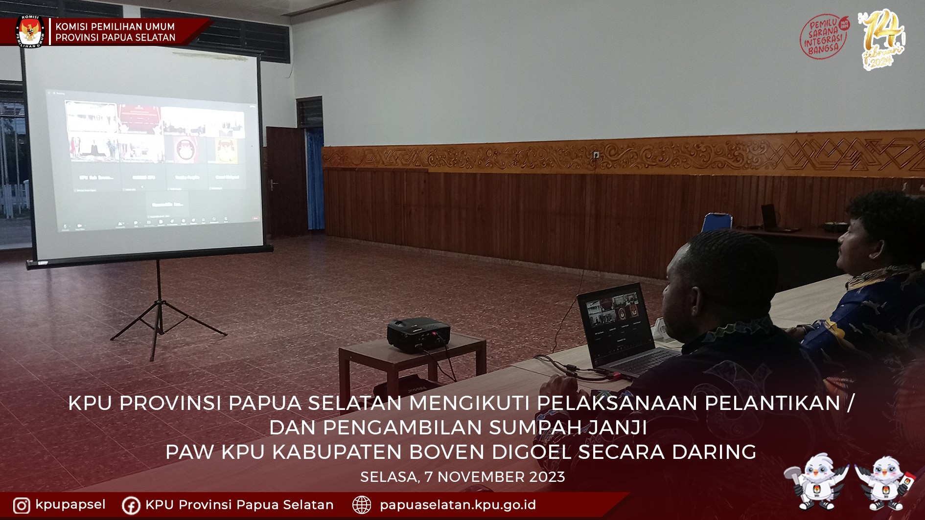 Hadir dalam kegiatan ini Divisi Teknis Penyelenggara Helda Richarda Ambay, Divisi Hukum Jufri Toatubun, dan Divisi Sosialisasi Alson Markus Kambu. Jajaran Sekretariatan Lingkup KPU Provinsi Papua Selatan dan Anggota KPU Kabupaten, Kasubbag, Datin, Admin/ Operator KPU Kabupaten Se-Provinsi Papua Selatan.