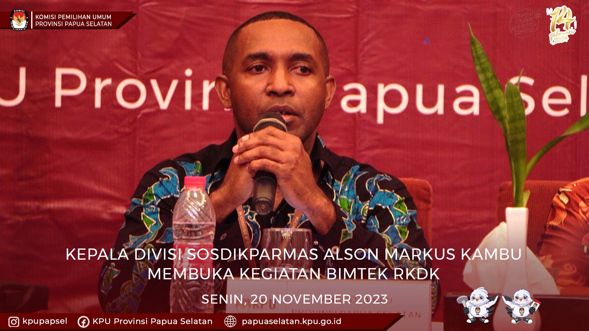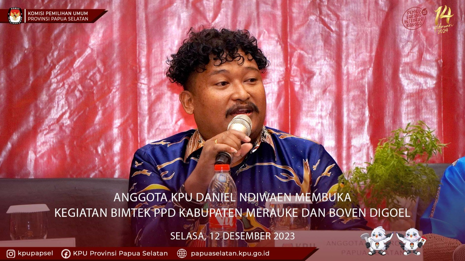 Kegiatan dibuka oleh Ketua KPU Provinsi Papua Selatan Theresia Mahuse . Dalam arahan pembukaan Theresia berharap KPU Kabupaten di wilayah Papua Selatan untuk fokus melayani pemilih DPT dan DPTb agar dapat menggunakan hak pilihnya. Adapun dalam melayani pemilih pindah memilih senantiasa memperhatikan ketentuan yang ada antara lain Undang-undang 7 Tahun 2017 dan putusan mahkamah konstitusi terkait syarat pemilih dapat pindah memilih.