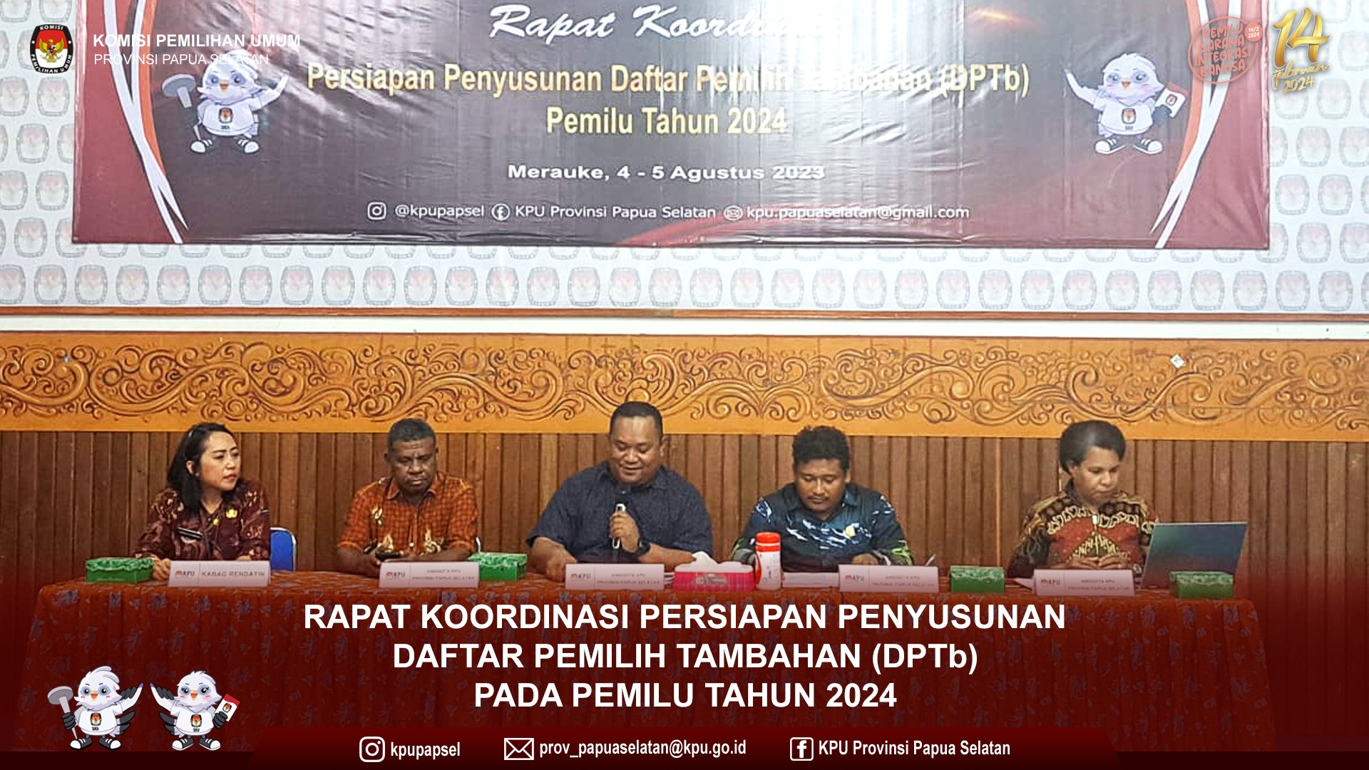 Plh. Ketua KPU Provinsi Papua Selatan Daniel Ndiwaen membuka kegiatan tersebut dan didampingi oleh Anggota KPU Provinsi Papua Selatan Helda Ricahrda Ambay, Alson Markus Kambu, Plt. Sekretaris Marcelus C. Eddy Rianto, dan Kabag Rendatin Yuliana Ch. Handayani.