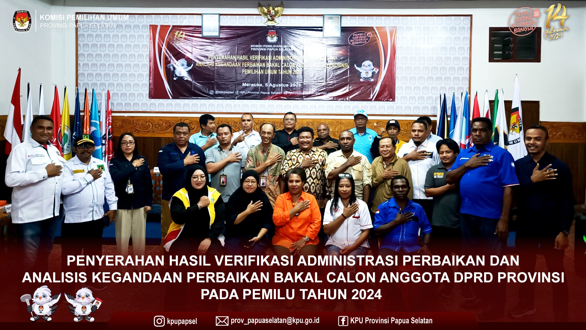 #temanpemilih, KPU Provinsi Papua Selatan menggelar Penyerahan Hasil Verifikasi Administrasi Perbaikan dan Analisis Kegandaan Perbaikan Bakal Calon Anggota DPRD Provinsi. Sabtu (05/08/2023)
