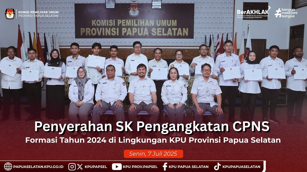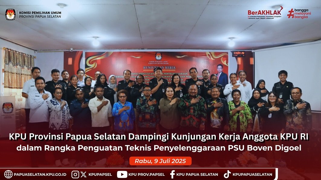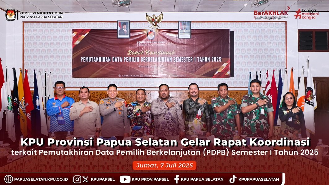 #TemanPemilih, KPU Provinsi Papua Selatan menggelar Rapat Koordinasi Pemutakhiran Data Pemilih Berkelanjutan (PDPB) Semester I Tahun 2025 secara hybrid, yakni secara luring di Aula Kantor KPU Provinsi Papua Selatan dan daring melalui Zoom Meeting, Jumat (04/07/2025).