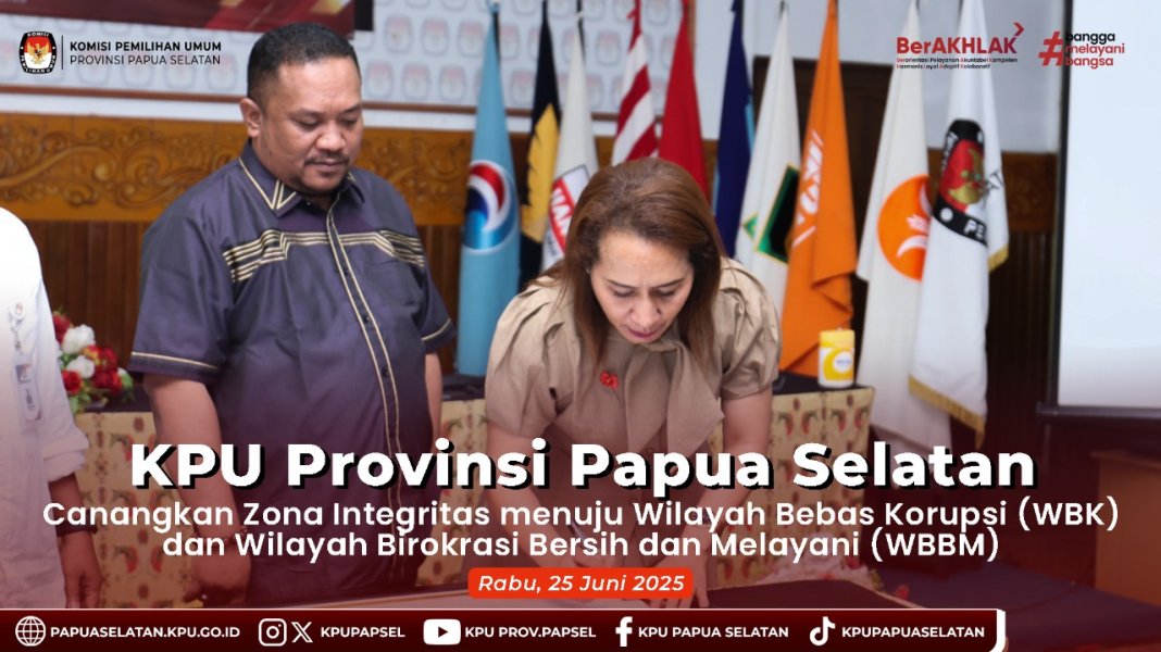 #TemanPemilih, KPU Provinsi Papua Selatan menyelenggarakan kegiatan Pencanangan Zona Integritas Menuju Wilayah Bebas Korupsi (WBK) dan Wilayah Birokrasi Bersih dan Melayani (WBBM), bertempat di Kantor KPU Provinsi Papua Selatan, Rabu (25/6/2025)